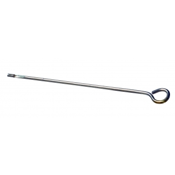 Met gleuf. Uit koper vervaardigd, dus roestvrij. Fijn model voor snel onthaken