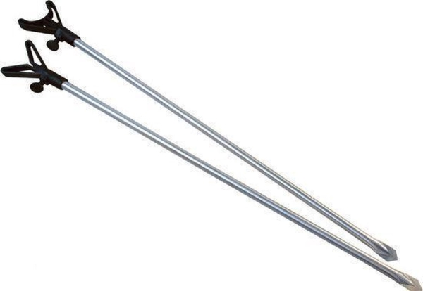 Stel telescopische hengelsteunen. Speciaal ontworpen voor het karpervissen. Ook geschikt voor het statisch vissen op Snoek of Snoekbaars. Gemaakt van lichtgewicht aluminium. Kompleet met een U- en V-vormige hengelsteunkop. De V-vorm heeft een uitsparing voor de lijn, zodat deze vrij genomen kan worden door een aanbijtende vis. Ook verkrijgbaar in 2x33cm.