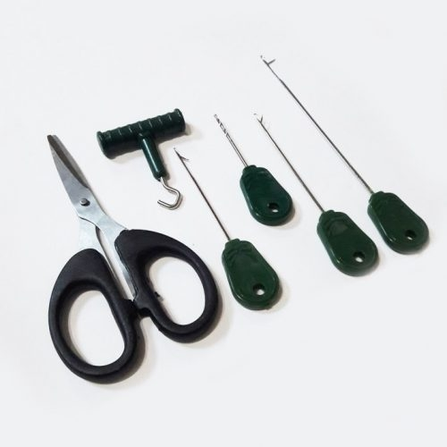 Deze baiting needle & scissors set bestaat uit maar liefst 6 verschillende tools. Namelijk 4 verschillende boilie naalden, een schaar en een pulla!