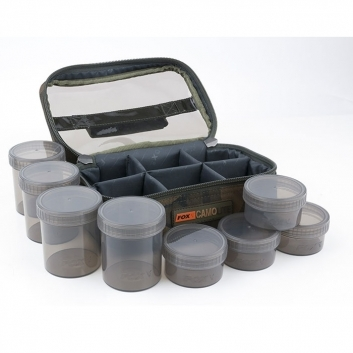 De Camolite Glug 8 Pot Case heeft dubbele heavy duty ritsen. De case wordt geleverd met 4 haakaas potjes met volledige hoogte en 4 haakaas potjes met halve hoogte. De tas heeft gevoerde vakverdeling en een getinte PVC deksel voor eenvoudige identificatie van de inhoud en bescherming tegen invloeden van buitenaf.