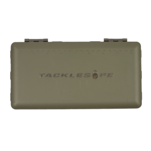 De TackleSafe is een compact opbergsysteem voor end-tackle in een harde clamshell-achtige koffer, magnetisch vastgezet en met een zacht aanvoelende, antislip buitencoating, en met een liniaal om te helpen bij het vastbinden van je tuigage. De ene kant heeft een open compartiment dat kan worden gebruikt voor het opbergen van grotere items zoals spoelen met onderlijnmateriaal, Pulla Rig Toolz en scharen. Dezelfde helft van de TackleSafe heeft ook acht compartimenten die toegankelijk zijn via flip-top deksels om ervoor te zorgen dat de items erin niet per ongeluk naar buiten kunnen komen – het is perfect voor dingen zoals Heli-Safe Beads, Hybrid Lead Clips en Fake Foods, bijvoorbeeld. De andere kant van de TackleSafe heeft twee grotere compartimenten met deksels, die gebruikt kunnen worden om pakjes haken, aasnaalden in op te bergen. Het heeft ook een aantal kleinere deksels.