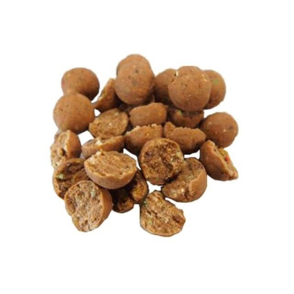 Een speciaal gemaakte voerboilie met variabele smaken Een zeer goed verteerbaar aas voor de karper maar is ontworpen met één doel: de karper te voeden. Deze boilie is samengesteld met goedkopere grondstoffen dan het premium assortiment dat wij aanbieden. Voerboilies zullen in een aantal situaties veel meer voordelen bieden dan bijvoorbeeld pellets. Het is daarnaast een goedkoop alternatief wanneer je op een druk bezet water zit te vissen en je meer moet voeren dan anders. Door het lage vetgehalte is deze boilie ook perfect om in de winter mee bij te voeren.