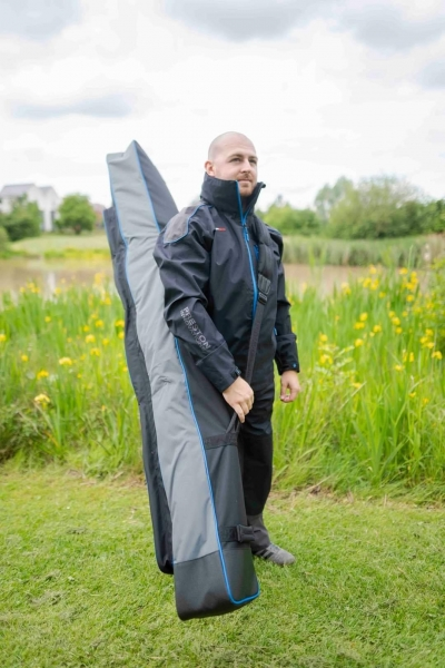Een gemiddeld formaat foedraal dat geschikt is voor zowel vaste hengels als werphengels. Ze biedt ruimte aan kokers op volle lengte, die secuur op de plek gehouden kunnen worden door Velcro strips. Voorzien van een extra vak aan de buitenkant dat ideaal te gebruiken is om een paraplu, landingsnet steel of hengelsteunen in op te bergen.