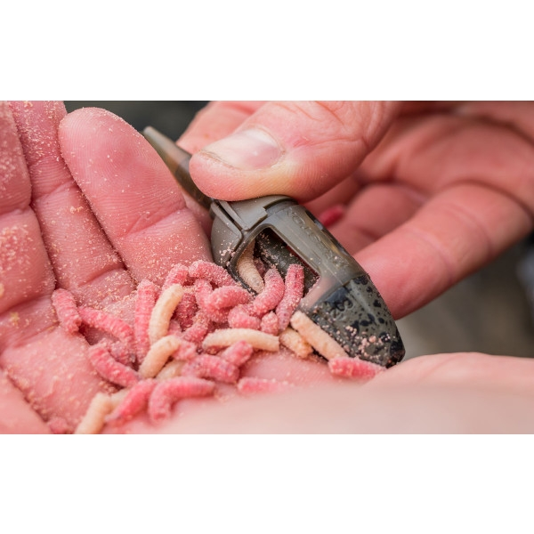 De ICS In-Line Maden Voerkorf laat zich door het naar voren geplaatste gewicht zeer goed werpen. De voerkorf wordt gevuld door de deksel open te draaien. Dit maakt het vullen van de korf zeer gemakkelijk. De grote mazen in de feeder zorgen ervoor dat het aas met grote regelmaat vrij komt. De ICS In-Line Maggot Feeders kunnen eenvoudig verwisseld worden met andere ICS-producten. Er zijn verschillende maten en gewichten.