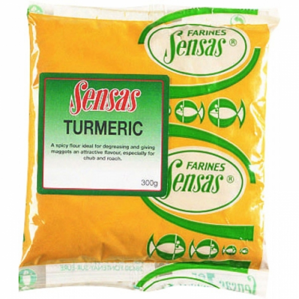 Sensas Kurkuma owel Turmeric is een toevoeging speciaal ontwikkeld voor het ontvetten en op smaak (kruidig) brengen van maden en pinkies. De Kurkuma van Sensas werkt zeer goed voor voorn en andere witvis en zit verpakt in zakjes van 200 gram