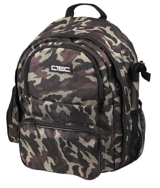 Deze Camou Backpack is een praktische rugzak en is ontwikkeld voor de mobile visser. In de rugzak passen pefect de basis artikelen die je bij je moet hebben. Er zitten extra externe vakken waar je klein materiaal in kwijt kan of materiaal waar je juist snel bij moeten kunnen. Er is zelfs een vak waar je veilig je zonnebril in kan opbergen.Er is genoeg ruimte om je tackle boxxen netjes op te bergen.