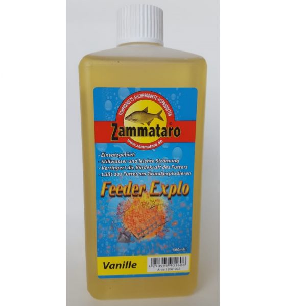Vanille als smaak wordt beschouwd als een van de best combineerbare smaken die vissers zich kunnen wensen. Omdat het zowel goed samengaat met vaste of pittige kruiden als met fruitige aroma’s. Vanilla Feeder Explo heeft een zeer zoete, heerlijke geur die de aandacht van alle soorten witvis naar het voergebied trekt; vooral wanneer de geurwolk explosief in het water wordt verspreid.Afhankelijk van de dosering verliest elke lokvoer door toevoeging van Feeder Explo na contact met water zijn bindkracht. De geheime en speciaal ontwikkelde vloeistoffen laten voerballen of de inhoud van een voerkorf op de bodem letterlijk exploderen. De dosering mag tussen de 30 en 60ml per kilo droog lokvoer liggen, hoe groter de dosering des te sneller het voer loskomt.